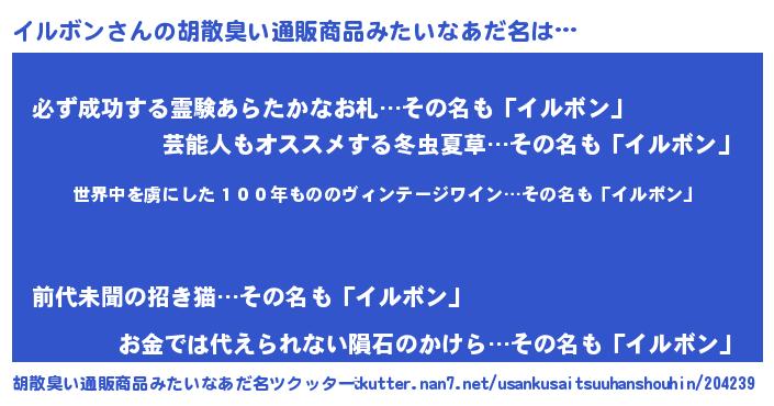 | 意味不明あだ名 | 『住所不定無職イルボン(6歳)』 |