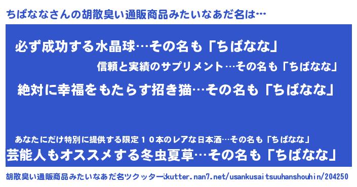 | ヘコむあだ名 | 『ちばなな(笑)』『ちばもー』 |