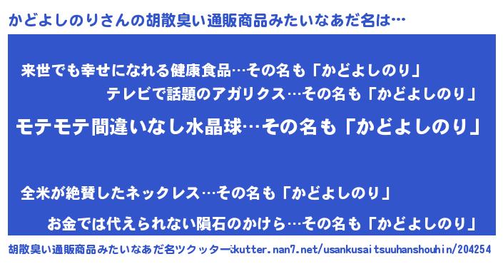 | ヘコむあだ名 | 『かどふぇ~』『かどよしのり(爆)』 |