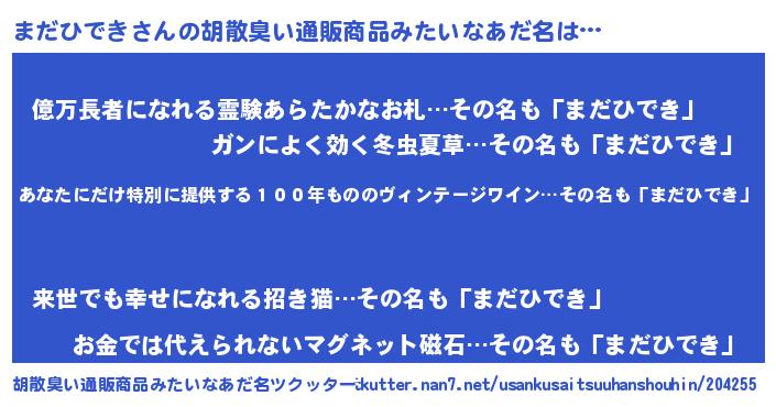 | 意味不明あだ名 | 『住所不定無職まだひでき(11歳)』 |