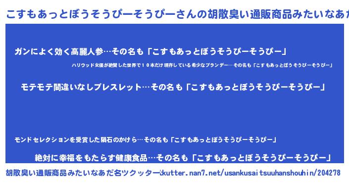 | 恥ずかしいあだ名 | 『プリティーこすもあっとぼうそうぴーそうぴー』 |