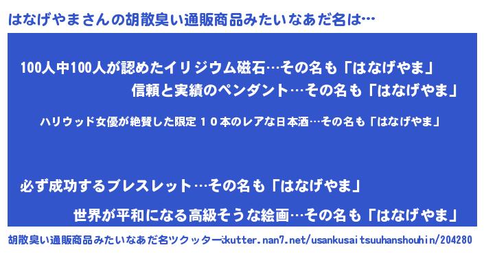 | 意味不明あだ名 | 『住所不定無職はなげやま(59歳)』 |