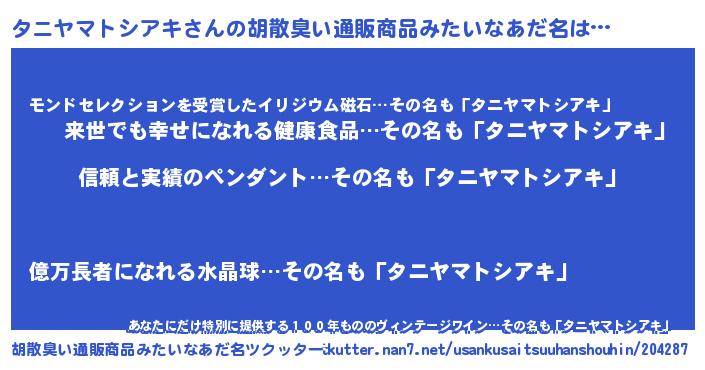 | 意味不明あだ名 | 『とにかく怪しいタニヤマトシアキ』 |