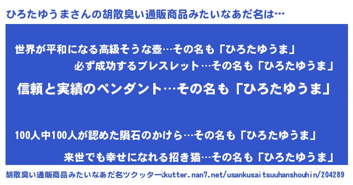 | 意味不明あだ名 | 『とにかく怪しいひろたゆうま』 |