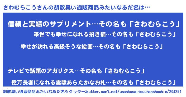| 意味不明あだ名 | 『さわむらこうフォーエバー』 |