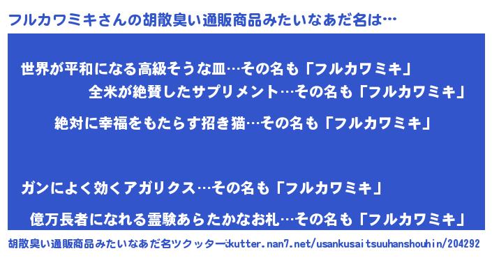 | 意味不明あだ名 | 『永久保存フルカワミキ』 |