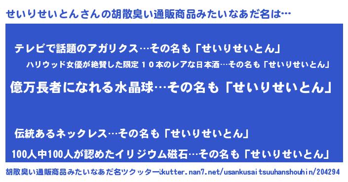 | 恥ずかしいあだ名 | 『プリティーせいりせいとん』『せいちん』 |