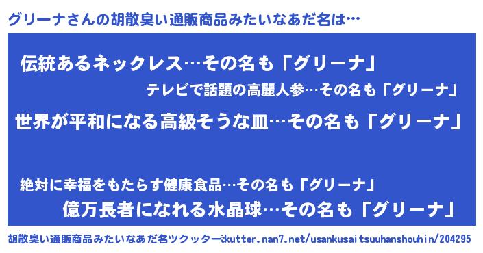 | 意味不明あだ名 | 『グリーナフォーエバー』『自称グリーナ』 |