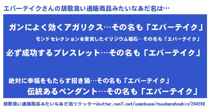 | 男性向けラノベタイトル風あだ名 | 『エバーテイクの憂鬱』 |