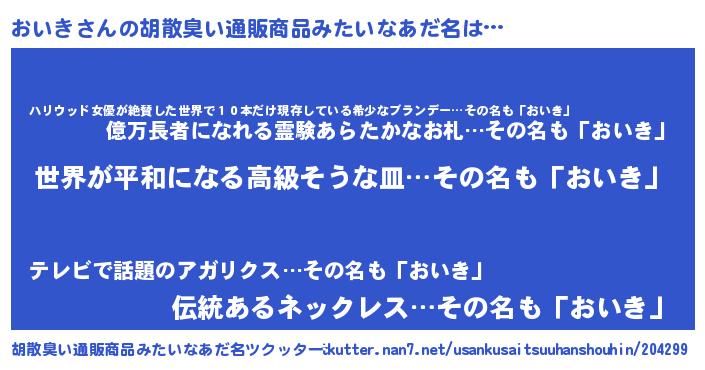 | 意味不明あだ名 | 『おいきフォーエバー』『ニラ科おいき属』 |