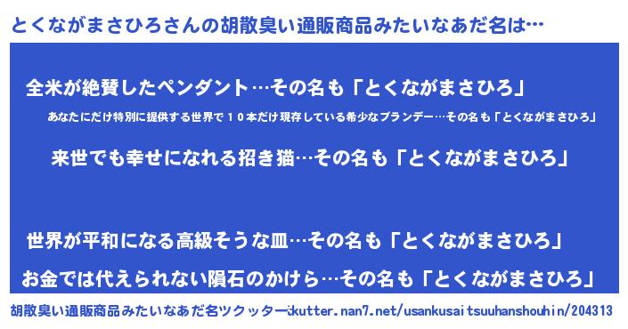 | ヘコむあだ名 | 『とくながまさひろ(笑)』『とくっちょ』 |
