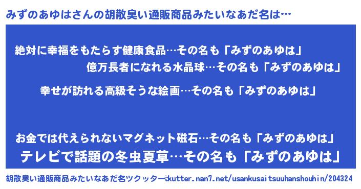 | 肩書あだ名 | 『みずのあゆはマネージャー』 |