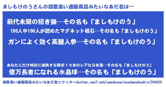| 肩書あだ名 | 『ましもけのう閣下』『ましもけのう助手』 |