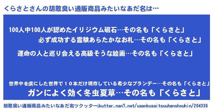 | 男性向けラノベタイトル風あだ名 | 『うちのくらさとが世界を掌握している!』 |