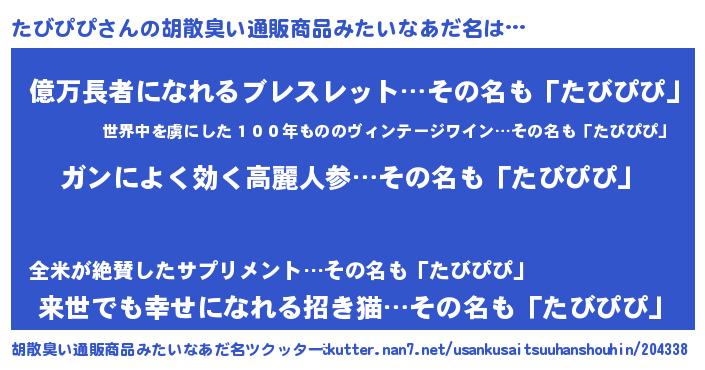 たびぴぴさんの胡散臭い通販商品みたいなあだ名をツクッター!