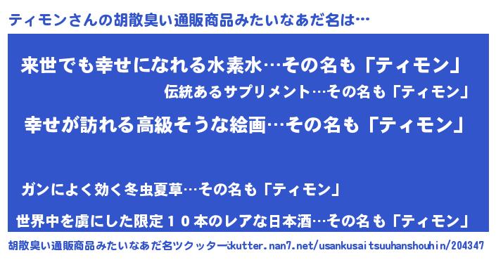 | 欧米人風あだ名 | 『ティモンクリステル』 |
