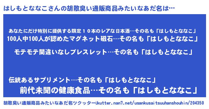 | ヘコむあだ名 | 『はしにー』『はしもとななこ(苦笑)』 |