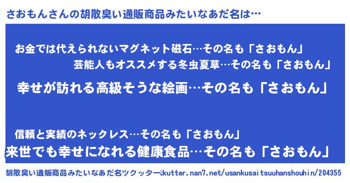 | 意味不明あだ名 | 『さおもんフォーエバー』『自称さおもん』 |