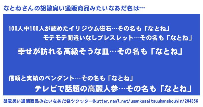 | 意味不明あだ名 | 『なとねフォーエバー』『自称なとね』 |