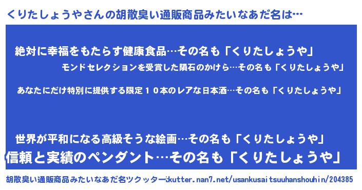 | 意味不明あだ名 | 『住所不定無職くりたしょうや(43歳)』 |