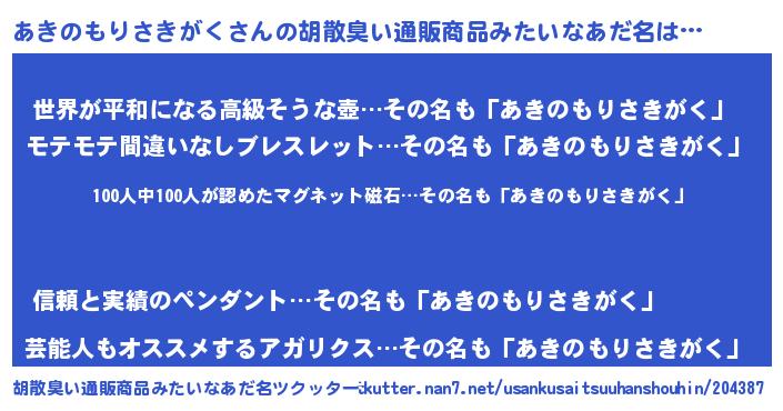 | 意味不明あだ名 | 『眠気覚ましガムあきのもりさきがく味』 |