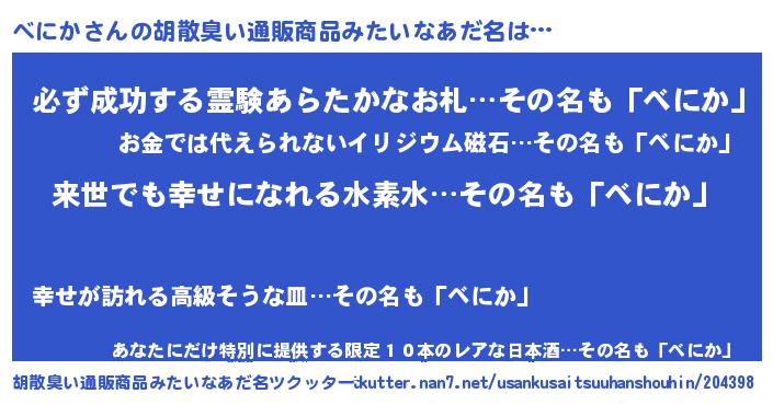 | ヘコむあだ名 | 『ベにか(震え声)』『ベににゅー』 |