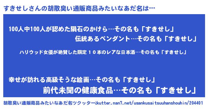 | ヘコむあだ名 | 『すきせし(爆)』『すき太郎』 |