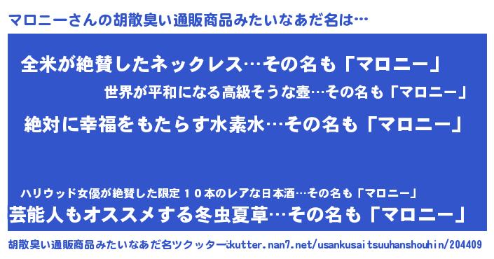 | ヘコむあだ名 | 『マロニー(震え声)』『マロっぺ』 |
