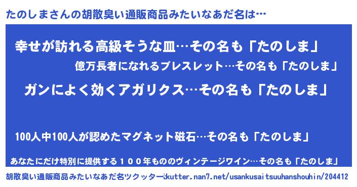 | 意味不明あだ名 | 『自称たのしま』『たのしまフォーエバー』 |