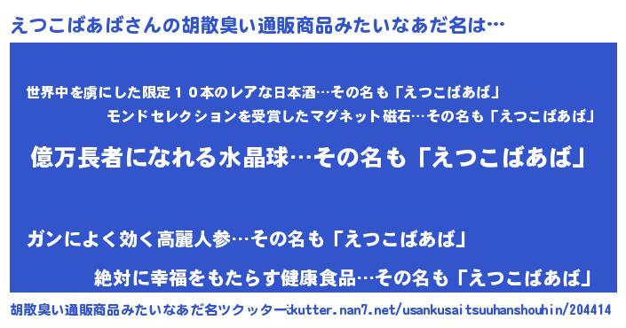 | 男性向けラノベタイトル風あだ名 | 『エツコバアバアートオンライン』 |