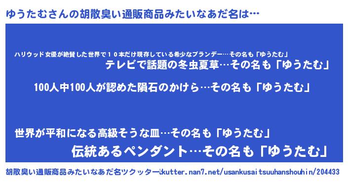 | ヒーロー風カッコイイあだ名 | 『正義の使者ゆうたむ』『仮面ユウダー』 |