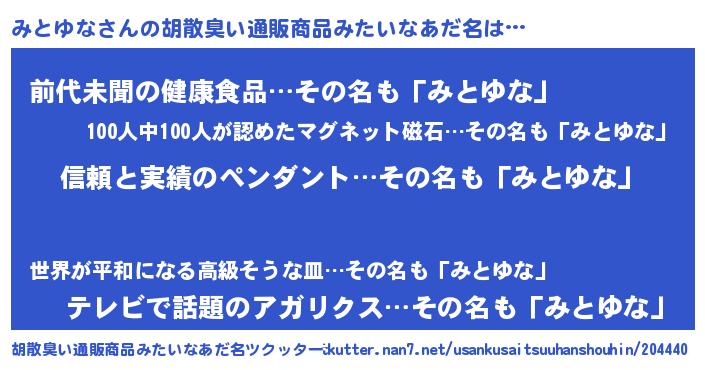 | 男性向けラノベタイトル風あだ名 | 『ダンジョンにみとゆなを求めるのは間違っているだろうか』 |