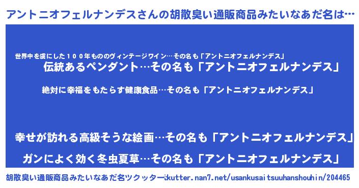 | 意味不明あだ名 | 『永久保存アントニオフェルナンデス』 |