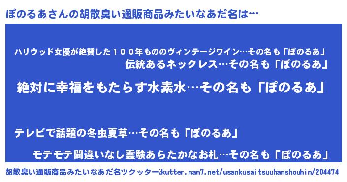 | ヘコむあだ名 | 『ぽのるあ(苦笑)』『ぽのにゅー』 |