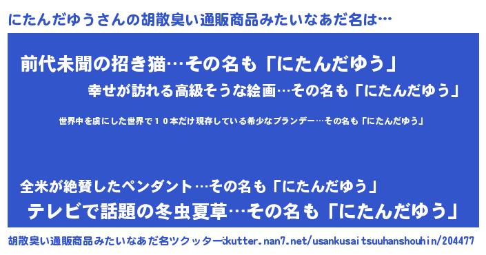 | ヘコむあだ名 | 『にたんだゆう(遠い目)』『酢こんぶ』 |
