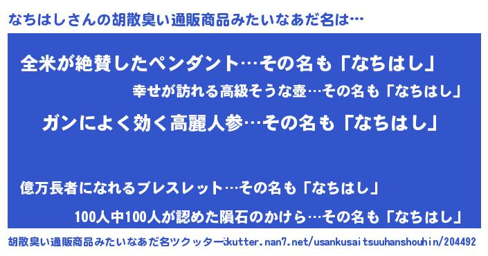 | 意味不明あだ名 | 『自称なちはし』『つくし科なちはし属』 |