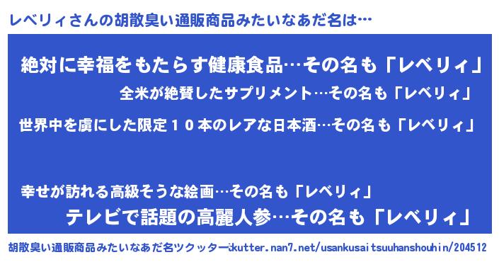 | 意味不明あだ名 | 『住所不定無職レベリィ(41歳)』 |