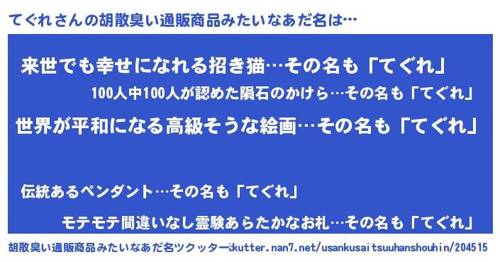 | ヒーロー風カッコイイあだ名 | 『ウルトラてぐれマン』『ネオテグレ』 |
