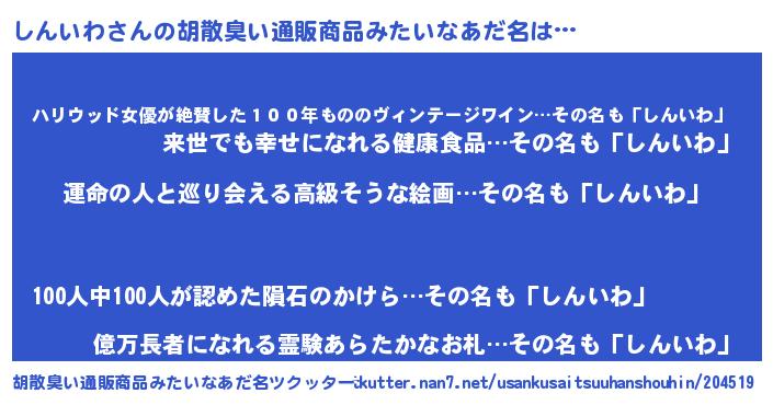 | 意味不明あだ名 | 『しんいわフォーエバー』 |