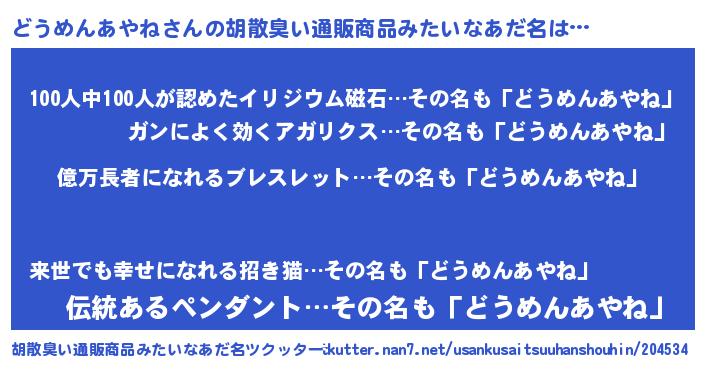 | 伝説のあだ名 | 『封印されし竜騎士どうめんあやね』 |