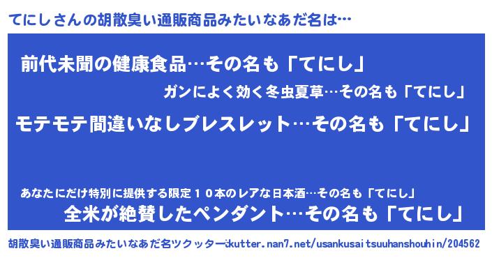 | 意味不明あだ名 | 『ペロリンてにし』『永久保存てにし』 |