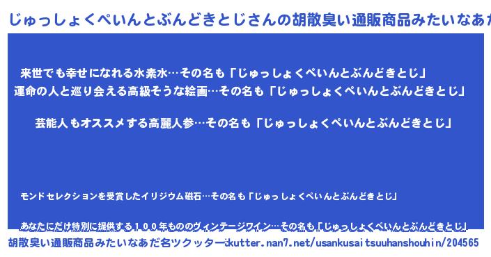 | 意味不明あだ名 | 『自称じゅっしょくぺいんとぶんどきとじ』 |
