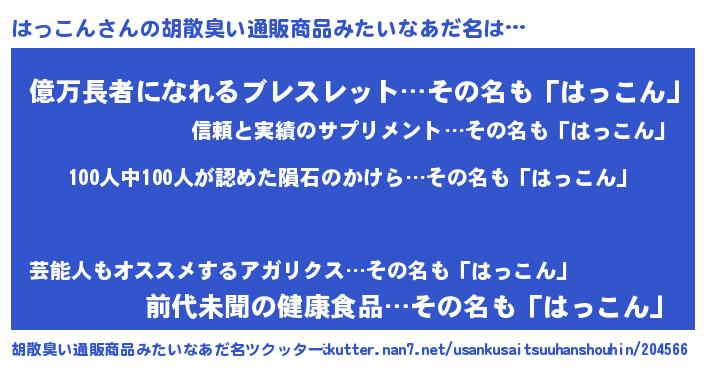 | 市区町村名 | 『はっ島市』『北はっこん区』 |
