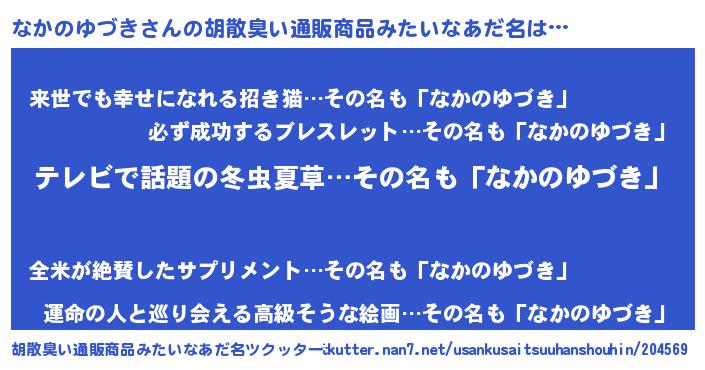 | ヘコむあだ名 | 『なかのゆづき(遠い目)』『なまこ酢』 |