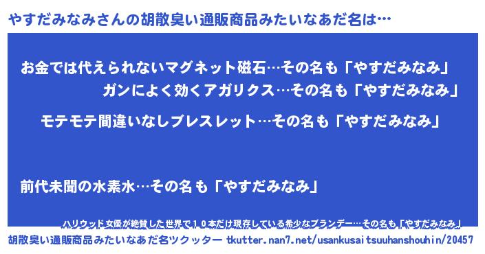 | ヘコむあだ名 | 『やすふぇ~』『やすだみなみ(笑)』 |