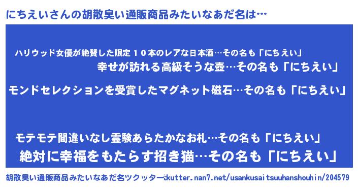 | ヘコむあだ名 | 『にちえい(小並感)』『つくし』 |
