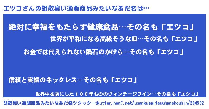 | ヘコむあだ名 | 『エツコ(遠い目)』『牛乳』『エツを』 |