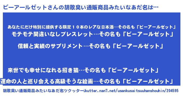 | 意味不明あだ名 | 『とにかく怪しいビーアールゼット』 |