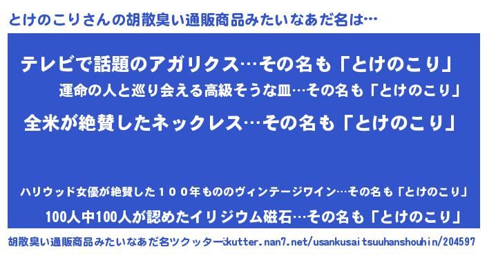 | 恥ずかしいあだ名 | 『トケリンリン』『トケノコリデラックス』 |