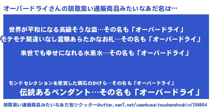 | 男性向けラノベタイトル風あだ名 | 『はたらくオーバードライさま!』 |